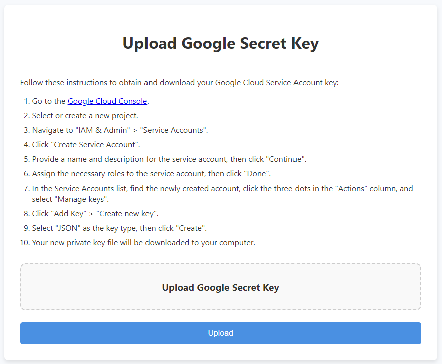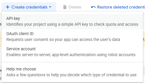 To obtain a key, you must create a small configuration project on the Google Cloud Console: