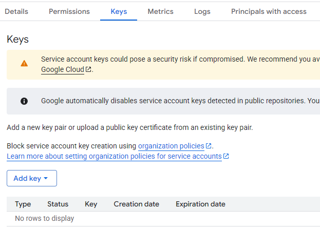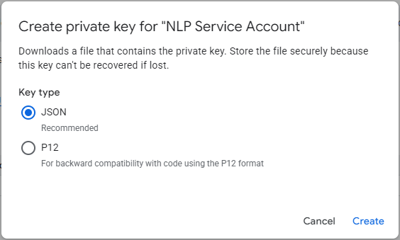 file will download to your computer. Keep this file safe. (This file contains your private Service Account credentials. Error Analyzer uses it to securely connect to Google’s NLP service on your behalf. Anyone with access to this file could potentially use your Google Cloud resources, so it should be stored in a secure location and never shared publicly.)